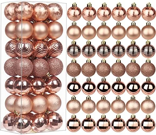 1.57″ Christmas Ball Ornaments 42 Pcs Christmas Tree Decorations Shatterproof Hanging Small Rose Gold Christmas Ornament Balls with Hanging Loop for Holiday Party Wreath Tabletop Xmas Tree Decor