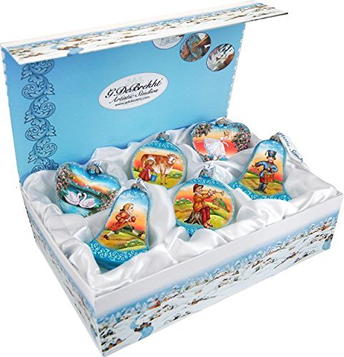 In the spirit of giving, G.DeBrekht ornaments and décor also make beautiful Christmas and holiday gifts to share with loved ones. Every G.DeBrekht ornament and decoration is an original work of art sure to become a cherished family tradition and treasured by future generations to come! **Some decorations on items may be slightly varied due to the hand-painted nature of the product. Overall ornament size: 4.25 by 3.5 inches Silk Lined Gift Box; Set of 12 Handcrafted in USA