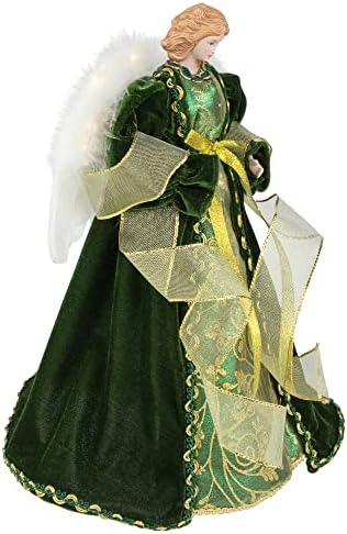 14″ Green Angel with Lighted Wings Christmas Tree Topper