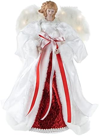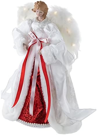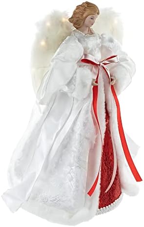 14″ White and Red Angel with Lighted Wings Christmas Tree Topper