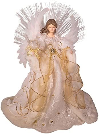 16-inch Fiber Optic Led Gold And White Angel Tree Topper Polyester