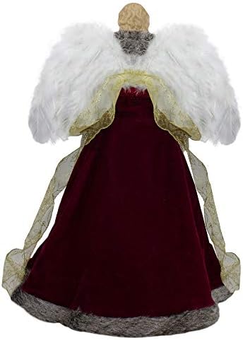 18″ Lighted Red and Gold Angel in a Dress Christmas Tree Topper – Warm White Lights