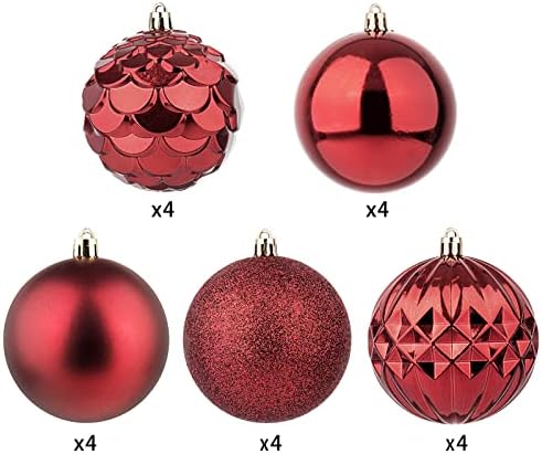 20Ct Christmas Ball Ornaments for Xmas Tree Shatterproof Christmas Decorations Hanging Ball Small for Holiday Party Decoration Tree Ornaments (Burgandy, 3.14In)