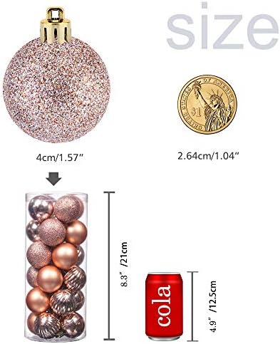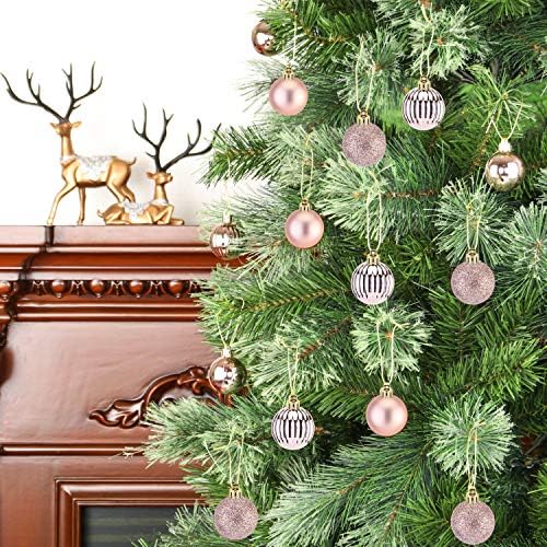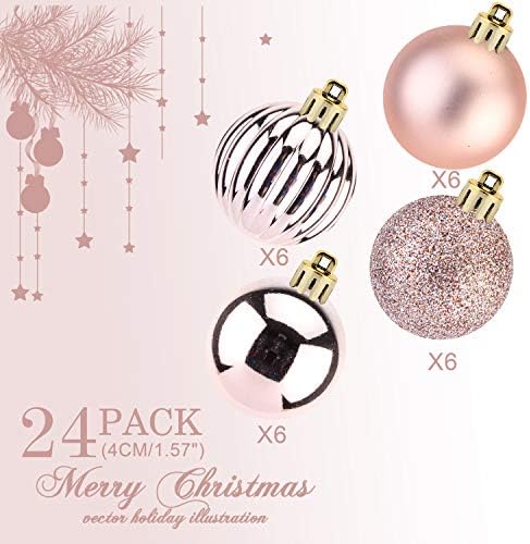 24Pcs 4cm/1.57inch Christmas Balls Small Size Christmas Tree Ornaments Hanging Christmas Home Decorations for Home House Bar Party(Rose Gold)