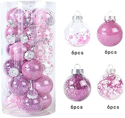 24Pcs Christmas Balls Ornaments for Xmas 6cm Christmas Tree Decorations Hanging Ball for Holiday Wedding Party Decoration (Pink)