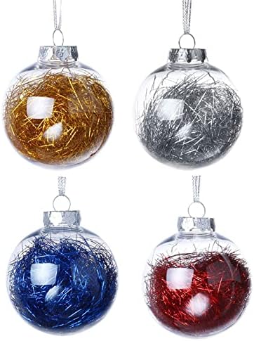 4 Pack Shatterproof Christmas Ball Ornaments Set Gold Silver Blue Red Baubles Bulk Assorted for Winter Holiday Home Decorations Hanging Snow Globe with Tinsel Inside