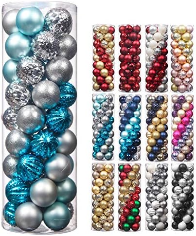 Material:2.36inch/6cm Variety of Shapes Plastic Christmas Balls and Flashlight PowderMake great addition to your Christmas decorations and holiday decoration. Perfect home decor for a variegated display of Christmas,wedding,party,ceremony.12 different colors of decorative balls and variety of shapes that can decorate varied Christmas trees,make your Christmas tree look more beautiful and