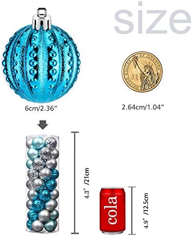 45Pcs 6cm/2.36inch Christmas Balls Glitter Christmas Tree Ornaments Hanging Christmas Home Decorations for Home House Bar Party(Blue/Silver)