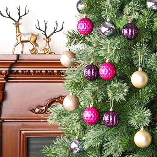 45Pcs 6cm/2.36inch Christmas Balls Glitter Christmas Tree Ornaments Hanging Christmas Home Decorations for Home House Bar Party(Lavender/Fuchsia/Platinum)