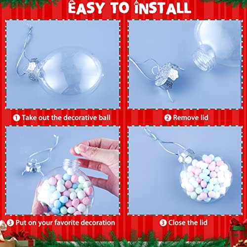 Package Include: you will receive 48 pieces Christmas clear fillable ornaments balls with ropes and removable metal caps, you can hang the decorative plastic balls in the place where you want to decorate with ropes, sufficient quantity fit for all kinds of craft projects or decoration occasions