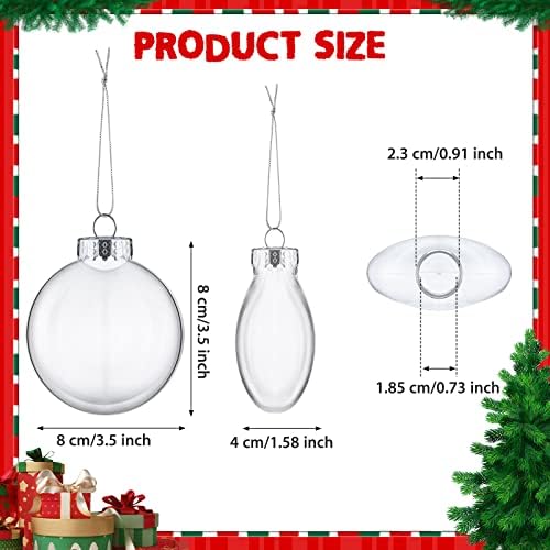 48 Packs Christmas Ornament Balls Clear Plastic Discs Balls Bulk Transparent Fillable Bulb Shaped Ornaments with Rope Removable Metal Cap for DIY Crafts Christmas Tree Decoration