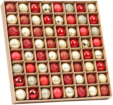 64 PCS Shatterproof Christmas Ball Ornaments Set Small Baubles Bulk Bowl Filler for Winter Holiday Home Decorations Assorted Box (red Gold)
