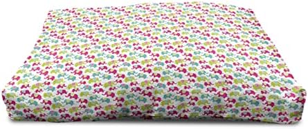 Ambesonne Animal Cartoon Wooden Dog House, s with Ornaments Joyous Friendly Pattern, Indoor & Outdoor Portable Dog Kennel with Pillow & Cover, 2X-Large, Green Blue Pink