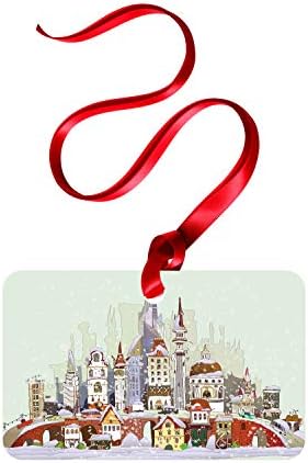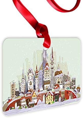 Ambesonne Christmas Flat Ornament, Noel in The City Xmas Background Yule Holiday Traditional Winter Scenery, Rectangle Aluminum Semi Gloss Hanging Decor Tree Decoration, 2″ x 3″, Pale Green Lavender