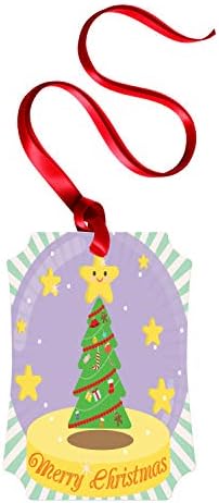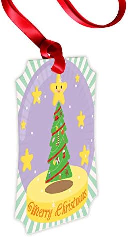 Ambesonne Christmas Flat Ornament, Ornamental Xmas Tree with Happy Star on in a Lavender Toned Snow Globe Graphic, Portrait Aluminum Semi Gloss Hanging Tree Decoration, 2.75″ x 3.94″, Multicolor