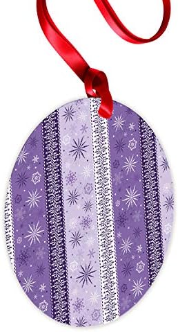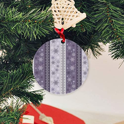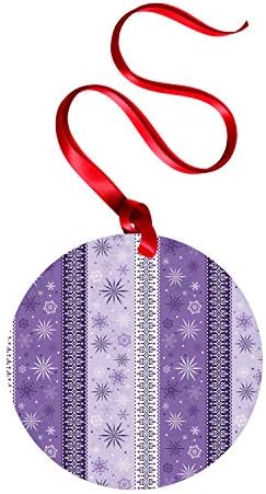 Ambesonne Ethnic Flat Ornament, Scroll Western Christmas Snowflakes Middle Eastern Noel Print, Circle Aluminum Semi Gloss Hanging Decor Tree Decoration, 3.9″ Round, Lavender Violet White