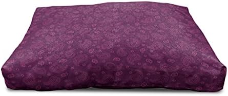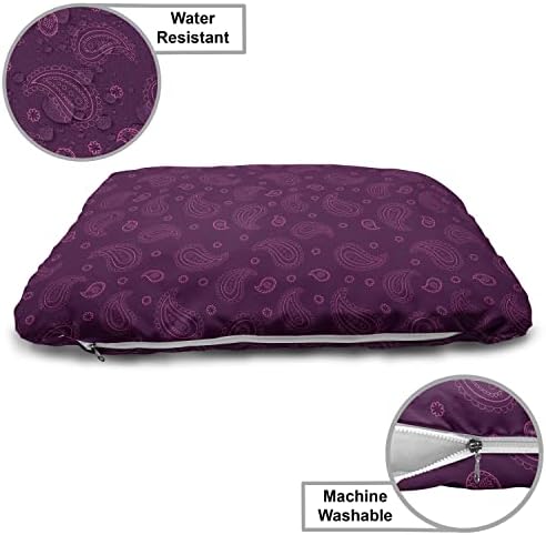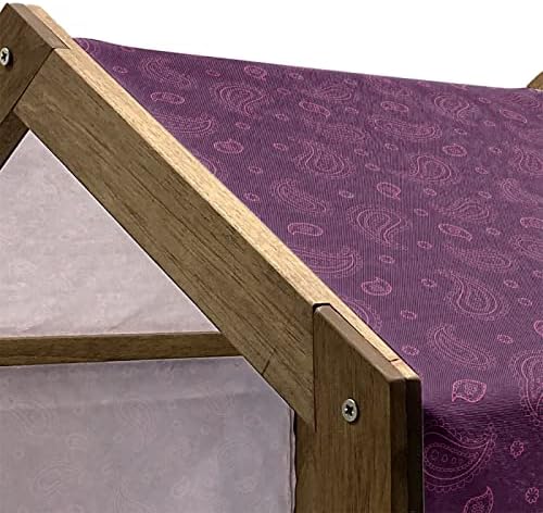 Ambesonne Purple Paisley Wooden Dog House, Outline Simplistic Oriental Ornament with Flower Items, Indoor & Outdoor Portable Dog Kennel with Pillow & Cover, 2X-Large, Plum and PinkMeasurements – 39.5″ X 55″ X 45″ Wooden Frame and 42.5″ X57″ Cushion Cover. House for your lovely friends.Made from – Utmost comfort and