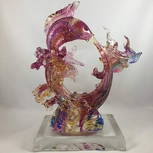 Amore Jewell Year Year Have Fish (Golden red) Fengshui Decoration Ornament Gift for Home & Office (Liuli Crystal Glass)