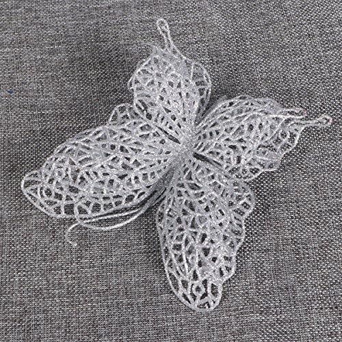 Amosfun Butterfly Decorations Ornaments Christmas Butterflies Tree Ornament Christmas Ornaments Wedding Party Decorations Glitter Rose Hanging Decoration Party Supplies