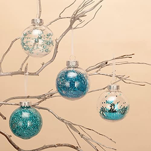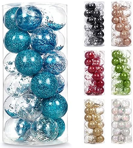 NEW TREND DECORATION FOR YOUR CHRISTMAS: Clear glaze base & glitter design will be perfect for your home decoration part in holidays.SUPERIOR MATERIAL: These ornaments are made of durable and eco-friendly plastic. Transparent ball shape appearance with glitter stuffing makes your decoration more attractive.ENABLE DIY DESIGN – Each ornament equips