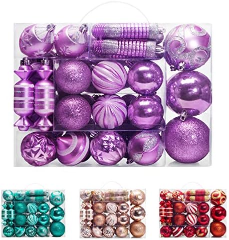 AMS 81ct Christmas Ball Ornaments Holiday Tree Decorations in a Reusable Hand-Help Gift Box for Wedding,Thanksgiving,Party(Light Purple)