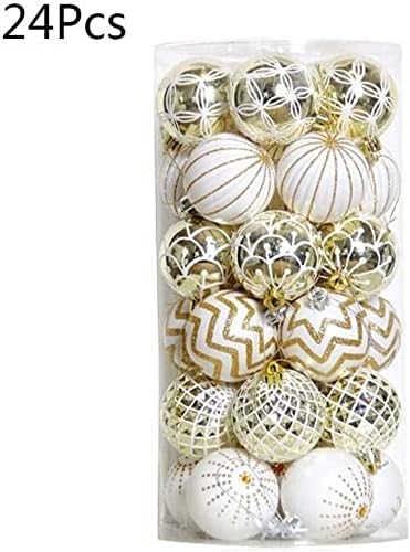 BAOWKQ Party Window Home Fun Christmas Hanging Ball Ornament Decorating 24Pcs White Gold Mixed Christmas Tree Decoration Christmas Balls 2021 Christmas Decorations (Ball Diameter : 8cm) GINOLEI