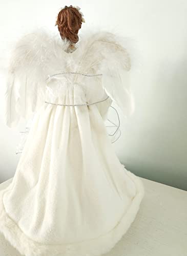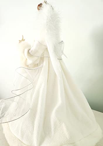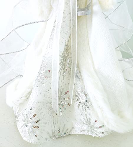 Beach coastal angel Christmas tree topper. Our ethereal white angel tree topper will look perfect on your tree or mantle this Christmas, beautifully white to match any beach décor! She wears an opulent outfit featuring lots of fur trim, soft fleece, a taffeta skirt with silver sparkles, a bodice of