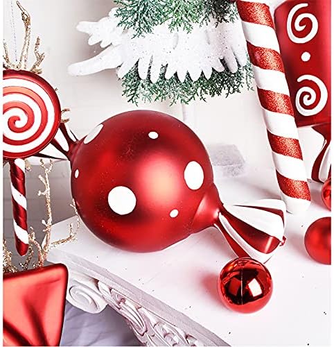 BIAN-63 Sweet Candy Shatterproof Christmas Ball Ornaments Decoration, Red and White Christmas Tree Ornaments Assorted Bulk, Long Red and White Painted Candy Ornaments-B
