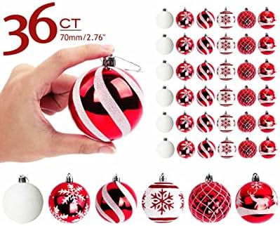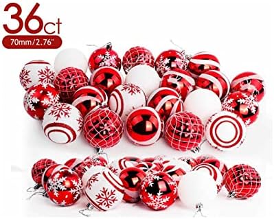 BLLXMX Christmas Pendant 36Pcs Christmas Balls Ornaments Christmas Tree Party Decoration 7Cm Red and White Ornaments Balls Christmas Ball Ornaments(Color:36pcs)