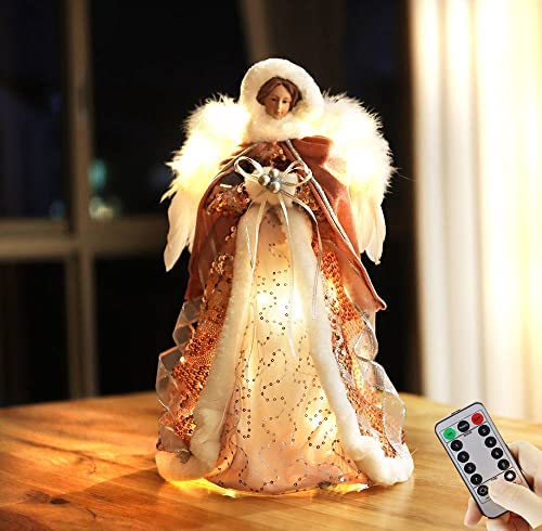 Angels Christmas Tree Topper Decroations Lighted Led Light with Timer Remote Control, 16-Inch Angel Treetop for Christmas Tree Decor, Champagne