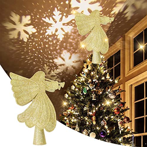 Bili-silly Angel Tree Topper with Lights,Angel Christmas Tree Topper Lighted with Rotating Snowflake Led Projector for Christmas Tree Decorations