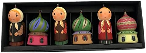 Christmas Wooden Set Angels and Temples 6 pcs. Hanging Figurines Ornaments Christmas Tree Decoration Wooden Home Decor Christmas & New Year Gift.Handmade in Russia.