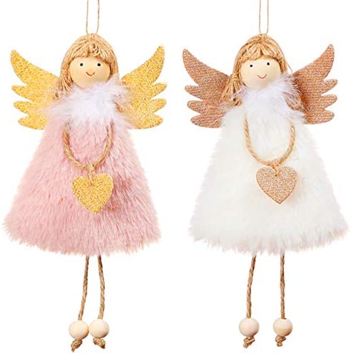 PGYFIS Christmas Decoration 2 Pieces Angel Doll Pendant Tree Hanging Ornaments Christmas Crafts Elves Decorations (Angel-Pink&White)