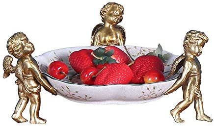 YANG1MN.Ornaments Home Living Room Decorative Fruit Bowl Small Ceramic Angel Inlaid Copper Light Luxury Model Room Soft Mounted Ornaments 25.5 25.5 11cm (Color : A)
