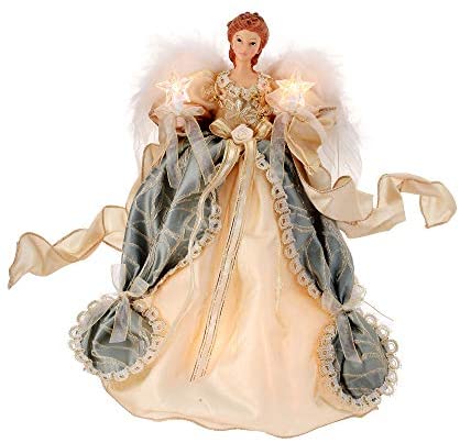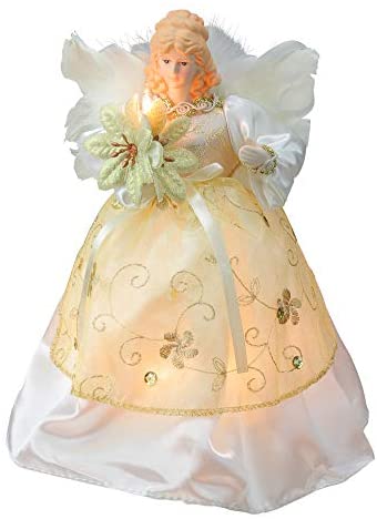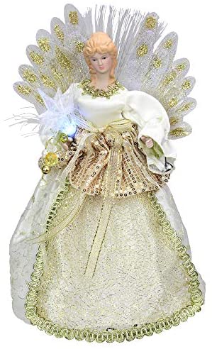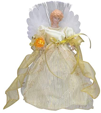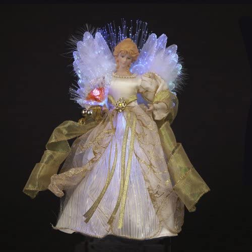 14″ Lighted Gold and Ivory Angel Tree Topper – Multicolor Fiber Optic Lights