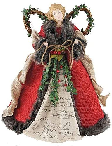 Northlight 18″ Red and Green Angel in a Dress Christmas Tree Topper Accented with Holly Berries – Unlit