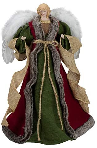 18″ Green and Brown Angel in a Dress Christmas Tree Topper – Unlit