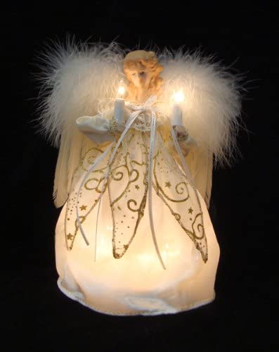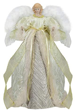 KSA 12″ Off-White and Gold Lighted Angel Christmas Tree Topper – Clear Lights