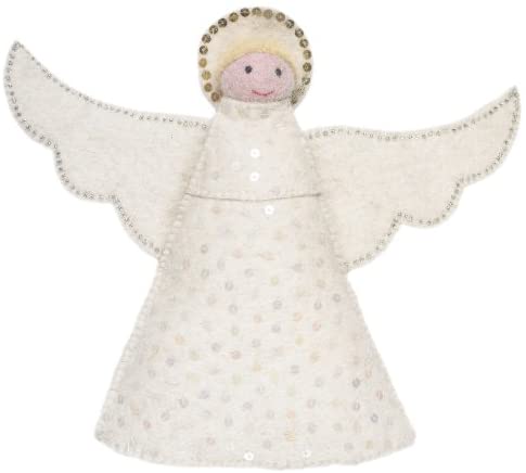 ARCADIA HOME Handmade Felt Dog Angel Tree Topper in White