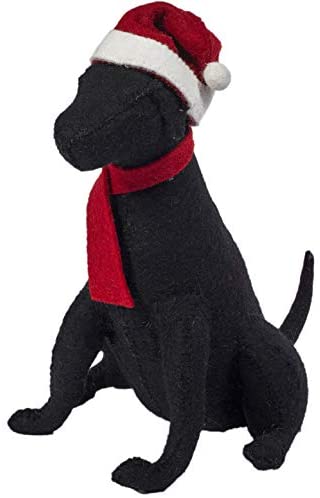 ARCADIA HOME Black Lab with Santa Hat Christmas Hand Felted Wool Tree Topper