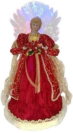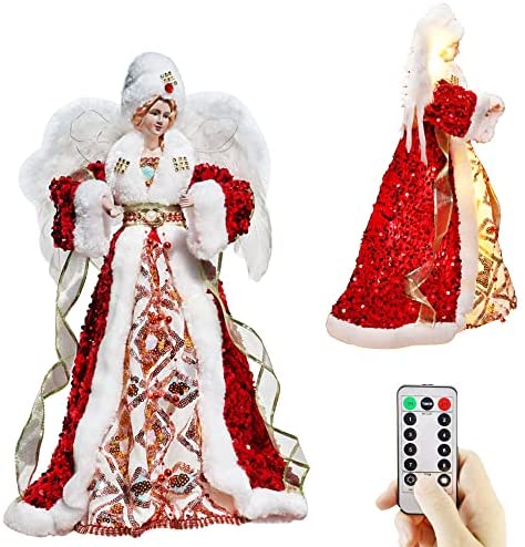 Angels Christmas Tree Topper Decroations Lighted Led Light with Timer Remote Control, 16-Inch Angel Treetop for Christmas Tree Decor, Red /Gold