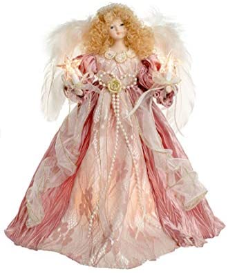 KSA 12″ Lighted Ivory Angel with Halo Christmas Tree Topper – Clear Lights