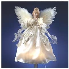 JJ’s 12” Fabric White/Silver 10-Light Angel Treetopper