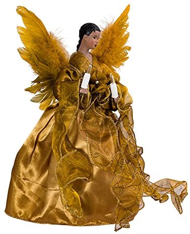 Kurt Adler 11.5″ Lighted African American Golden Winged Angel Christmas Tree Topper – Clear Lights