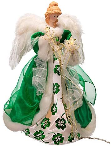 Kurt S. Adler 16-Inch UL 10-Light Irish Angel Treetop Tree Topper, Multi