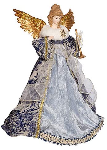 Contemporary Home Living 14.5″ Blue and White Pre-lit Trinity Angel Topper