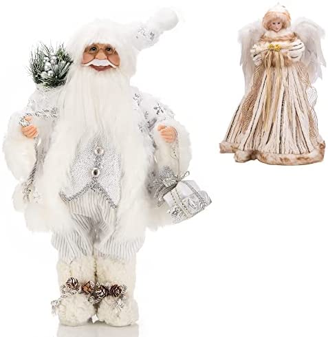Redrubbit 18 Inch Snow White Santa Claus & 16 Inch Angel Tree Topper