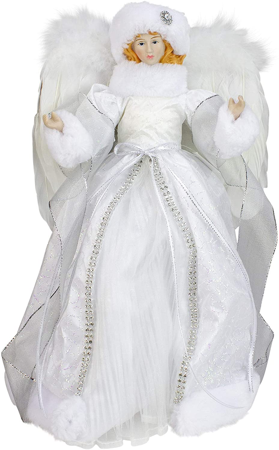 White Winter Angel Tree Topper Christmas Decoration 16″ Height