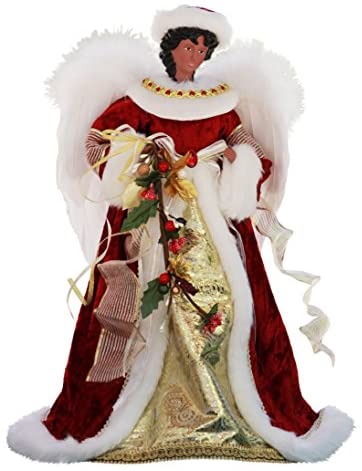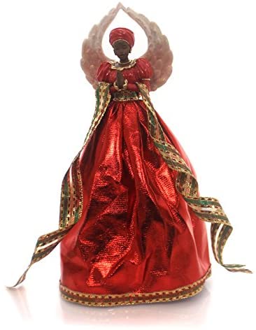 Windy Hill Collection 14″ Inch Standing Red Floral African American Black Angel Christmas Tree Topper or Table Top 414570A