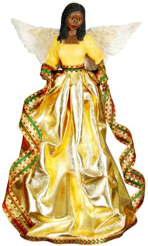 Kurt Adler UL 10-Light African American Angel Christmas Treetop Figurine, 13-Inch, Gold